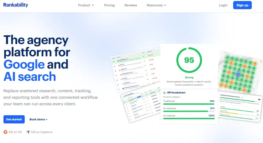 - Best for: Agencies already using Rankability for scalable content optimization who want AI visibility data in the same environment they create & update copy.