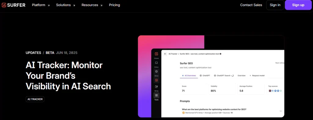 5. Surfer AI Tracker (Best for Surfer-native teams)