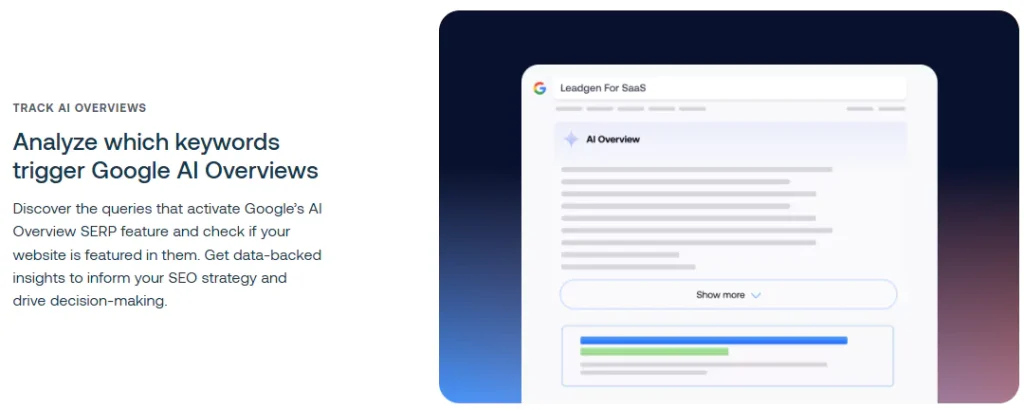 Google AI Overviews tracking – See when AIO appears for your keywords and which URLs are cited.