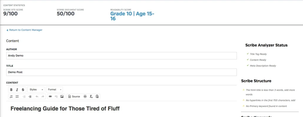 - SEO experts and an SEO specialist role that needs live content scoring while writing