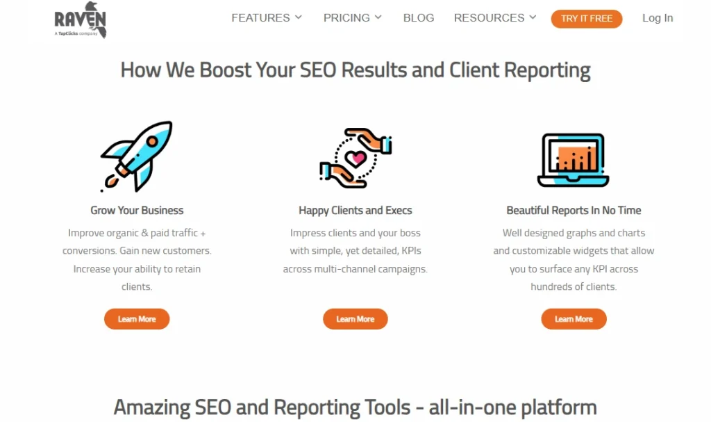 - Helpful for agencies already standardized on Raven for reporting features and client reports