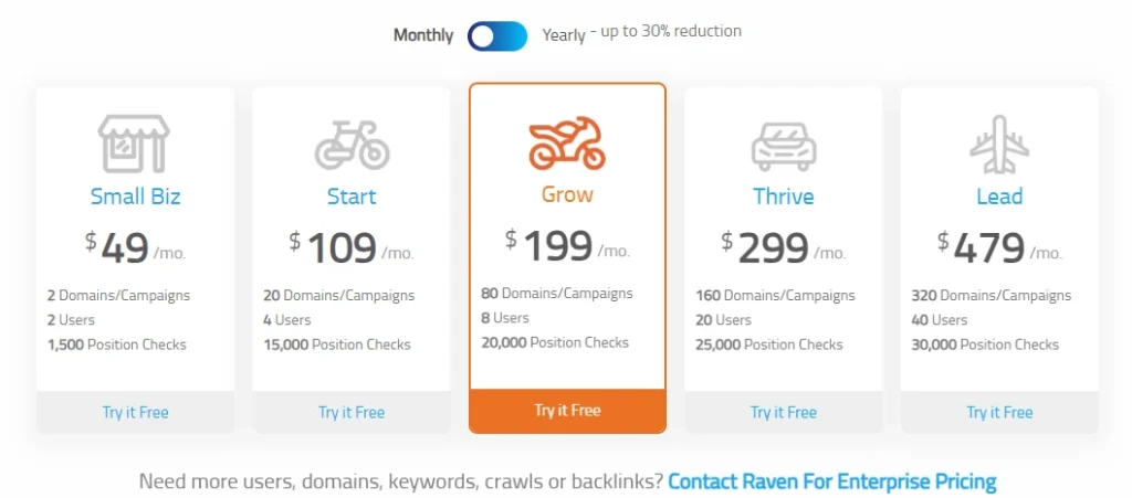 On the official pricing page, Raven highlights annual prepaid pricing such as:
