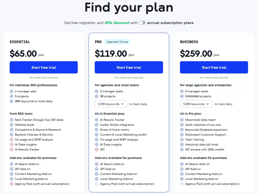 - Your “real” monthly spend depends on the base SE Ranking plan plus the add-on tier you need.